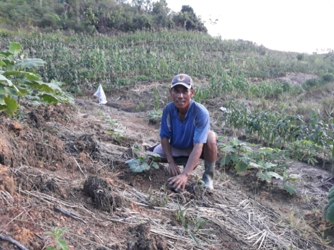 mengolahnya dengan berkebun berbagai jenis sayuran diantaranya sawi, terong