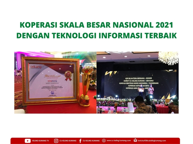Akhir bulan Februari 2021 ini mengukir sejarah dalam perjalanan CU Keling Kumang (CUKK) menuju usia yang ke-28 tahun. Dalam Launching Buku dan Award 100 Koperasi Besar Indonesia yang diadakan oleh Majalah Peluang di Ballroom Nareswara, Smesco, Jakarta Selatan, CUKK meraih penghargaan dalam kategori Teknologi Informasi/IT terbaik.