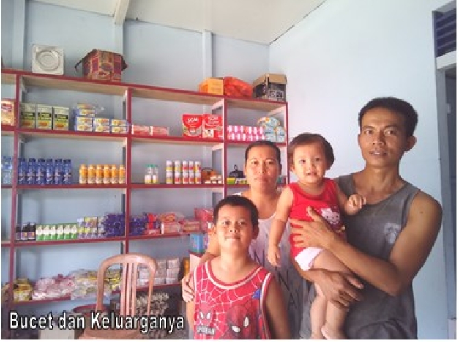 Bucet dan istri serta kedua anaknya tinggal di rumah kakak Bucet yang ada di Dusun Mentunai, Desa Mentunai, Kecamatan Kayan Hilir, Kabupaten Sintang. Bucet juga memiliki keahlian sebagai montir dan mencoba untuk membuka bengkel di rumah, kebetulan di kampung Bucet belum ada yang membuka usaha bengkel. Disamping membuka bengkel Bucet juga menjual pulsa dan usaha kecil- kecilan seperti berjualan minuman dingin serta kue-kue yang sudah lama ditekuni oleh Bucet sekitar 10 tahun ini. Pertengahan tahun 2014 yang lalu, Bucet jatuh sakit. Sejak mengalami sakit dan merasakan biaya berobat di klinik yang tergolong mahal membuat Bucet terdorong untuk merubah pola hidup. Dari situlah Bucet mulai melakukan pola hidup sehat dan semakin aktif untuk menabung. Dengan adanya tabungan membuat semua menjadi terasa lebih diringankan terutama dalam hal kesehatan. Karena jatuh sakit, Bucet sempat istirahat total selama satu bulan, hal itupun membuat pemasukan di keluarga mereka berkurang. Namun, Bucet tidak patah semangat ia terus berusaha untuk bangkit kembali.